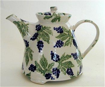 Hand thrown teapot 9 inches long by 7 inches high. Short three footed as well. Photo shows one of the three supports.