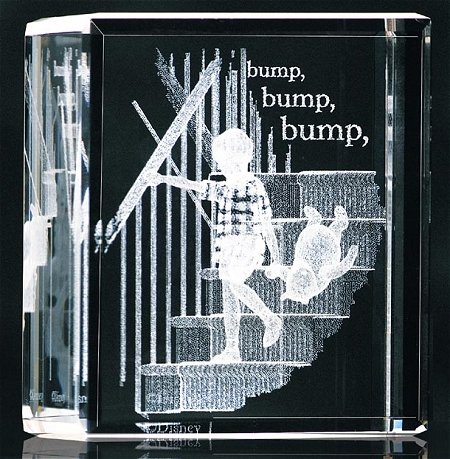 Winnie the Pooh closest to life as he gets dragged down the stairs; bump, bump, bump, beside Christopher Robin.