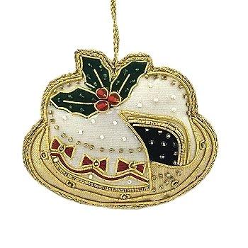 These unique Christmas decorations are made using the traditional method of zardozi embroidery.